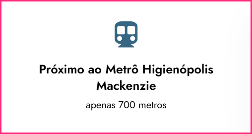 A apenas 500m do metrô Higienópolis Mackenzie, mobilidade garantida